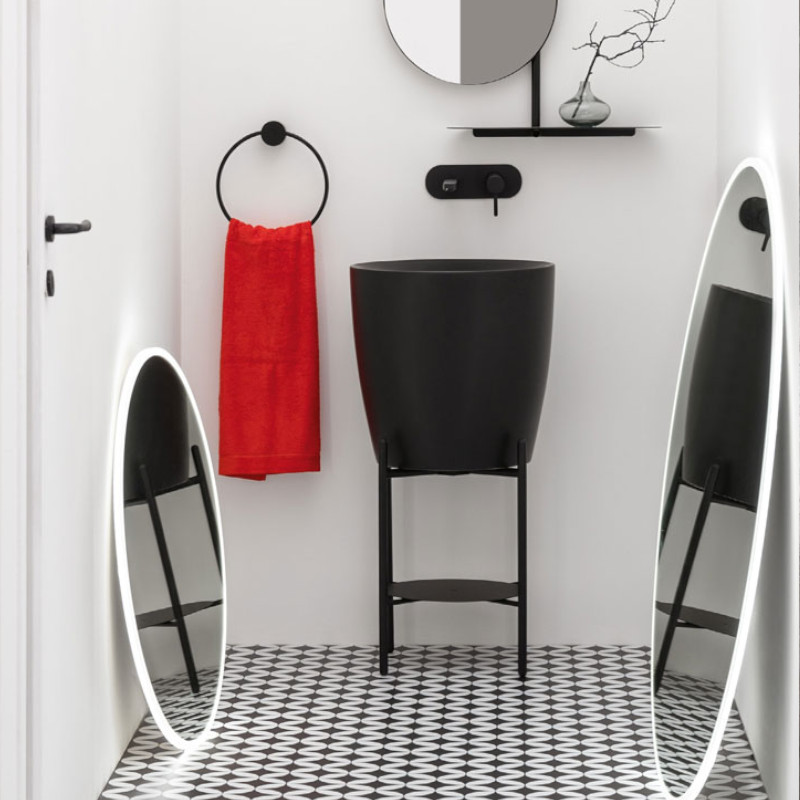 Axa KRACKLITE Umywalka stawiana na blat ∅ 46 cm z korkiem Click-clack z stojakiem i półką Czarny mat 8050007+AF0015+S8050007+R8050007