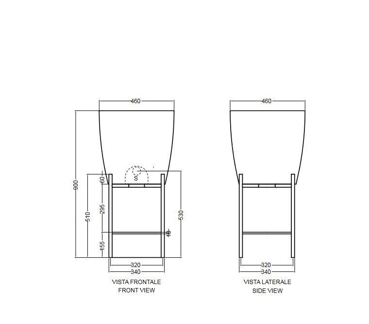 Axa KRACKLITE Umywalka stawiana na blat ∅ 46 cm z korkiem Click-clack z stojakiem i półką Szary mat/Czarny mat 8050009+AF001509+S8050007+R8050009