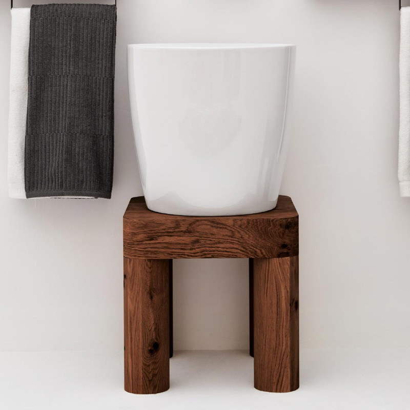 Axa KRACKLITE Umywalka stawiana na blat ∅ 46 cm z korkiem Click-clack oraz stojakiem drewnianym Biały połysk/Dark Oak 8050001+AF0015+SG8050021