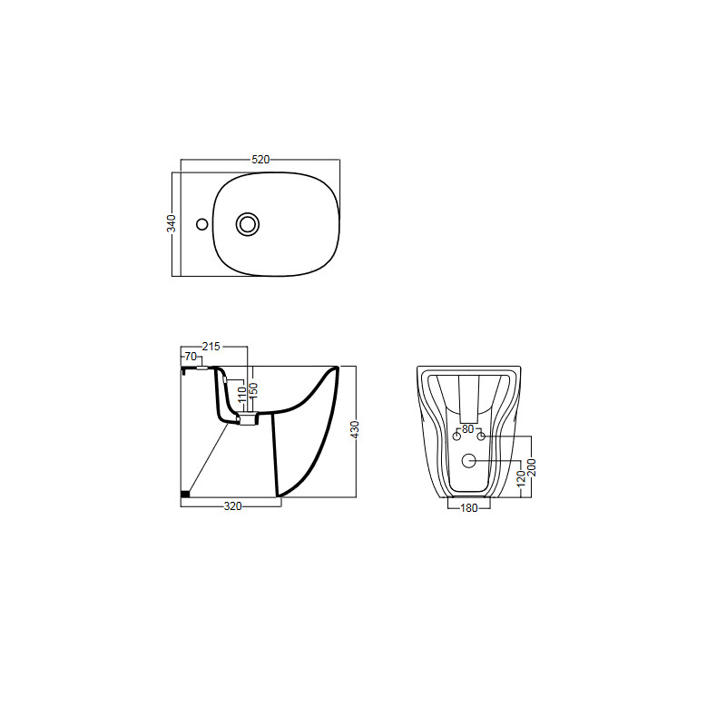Wymiary: Szerokość: 34 cm Długość: 52 cm Wysokość: 43 cm Cena dotyczy samego bidetu.