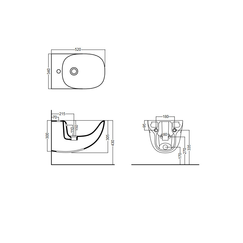 Wymiary: Szerokość: 34 cm Długość: 52 cm Wysokość: 30,5 cm Cena dotyczy samego bidetu.