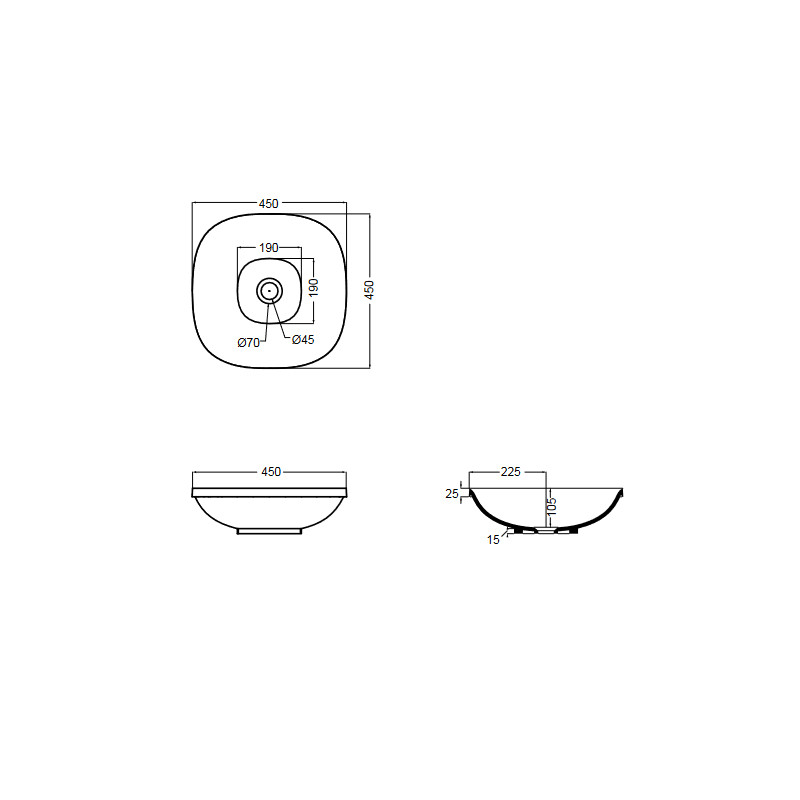 Axa Wild Umywalka stawiana na blat lub wpuszczana 45x45 cm z korkiem Click-clack Biały połysk 3009001+AF0015