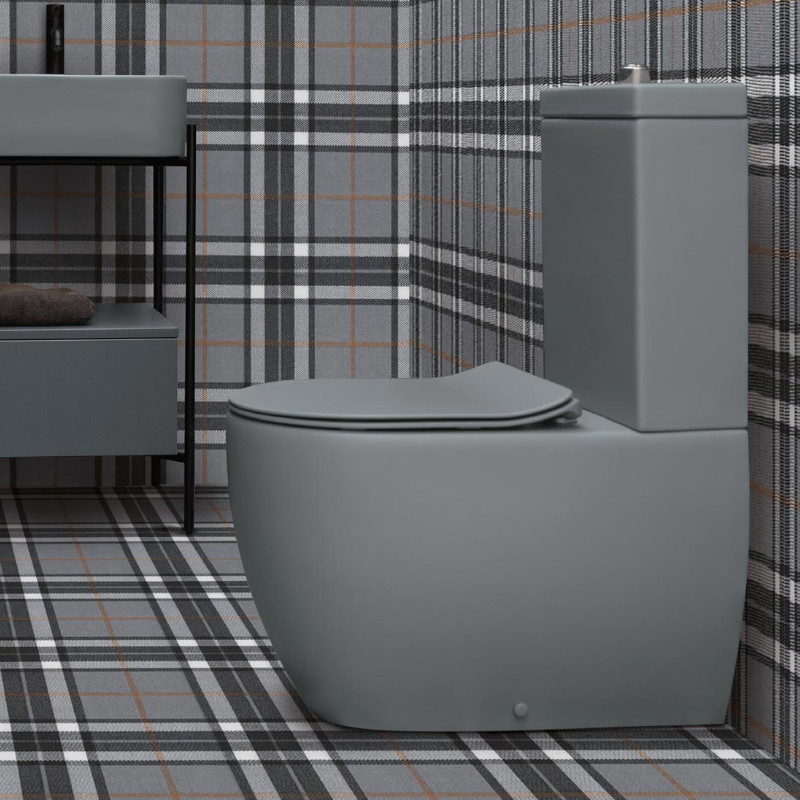 Axa Glomp Miska stojąca 36,5x66 cm do kompaktu i zbiornik z deską WC wolnoopadającą Grey Matt 0201309+0205109+319109