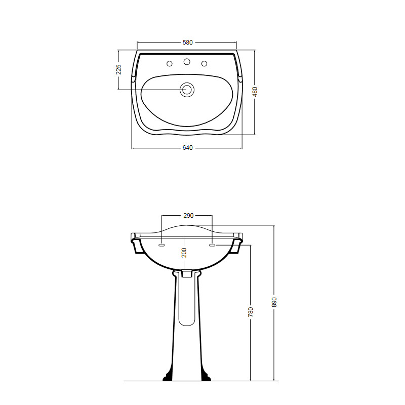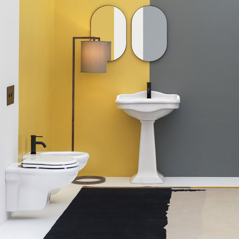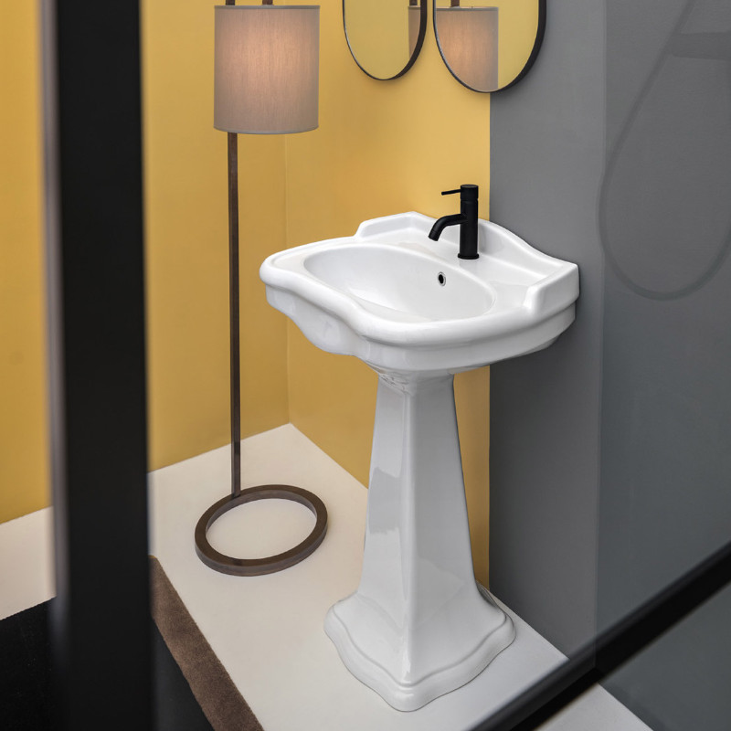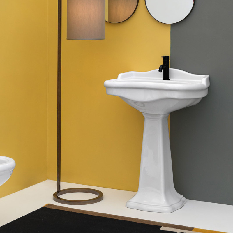 Axa Contea Umywalka ścienna 64x48 cm z korkiem Click-clack i postumentem Biały połysk 0603101+0604001+AF0015