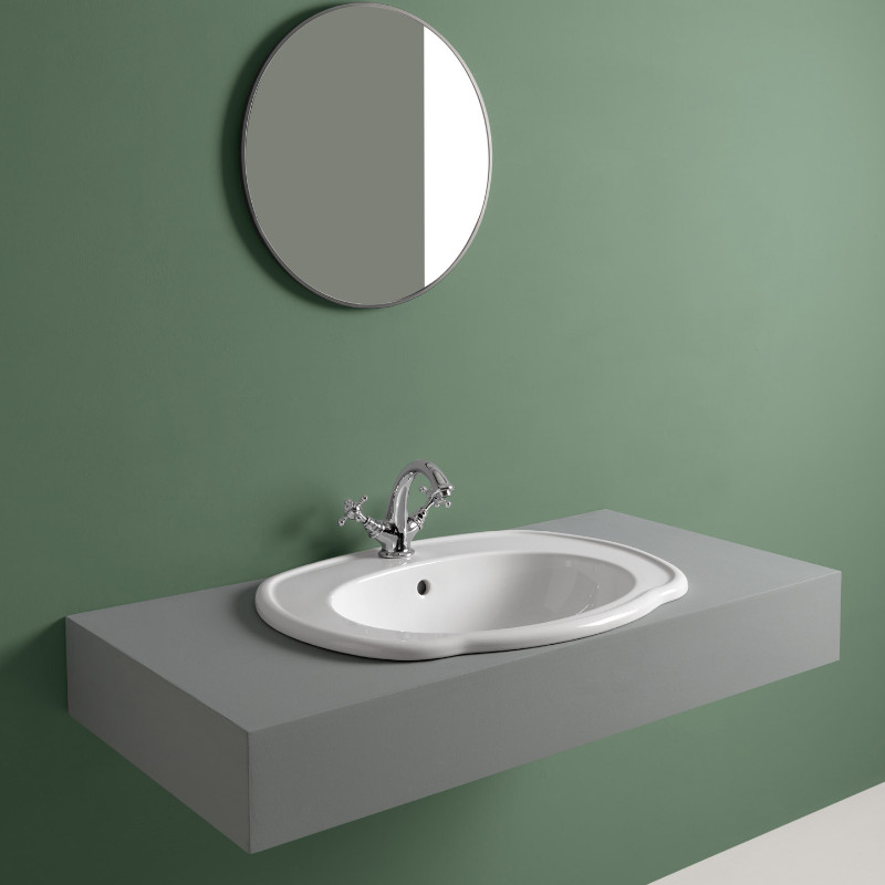 Axa Contea Umywalka wpuszczana w blat 68x54 cm z korkiem Click-clack Biały połysk 0603901+AF0015