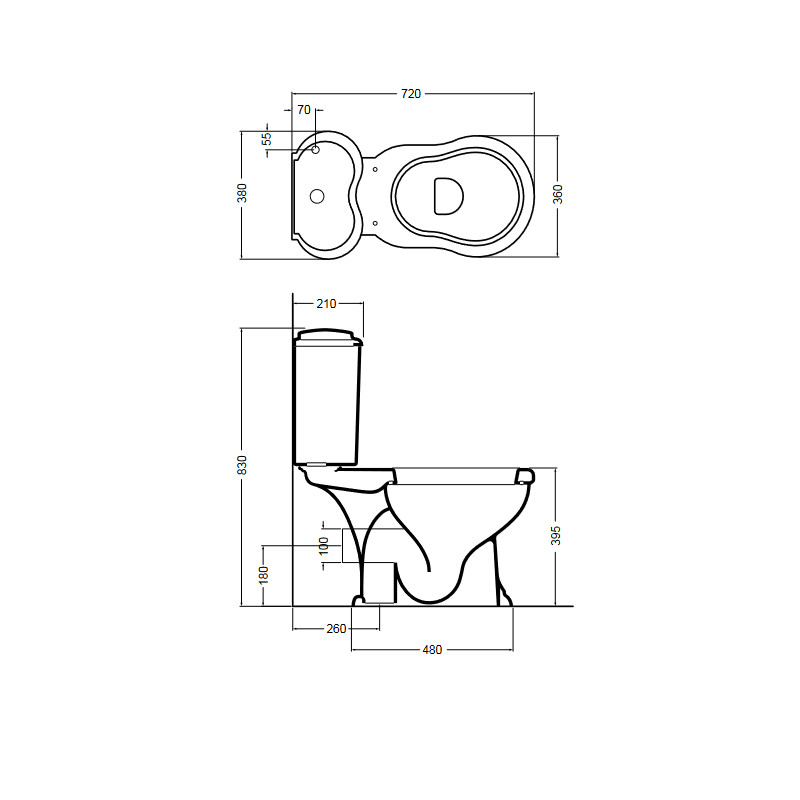 Axa Contea Miska stojąca 36x72 cm do kompaktu i zbiornik z deską WC Biały połysk 0601301+0605101+AA0601