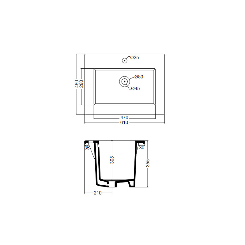 Axa Prisma Umywalka wpuszczana w blat 61x46 cm z korkiem Click-clack Biały połysk WS15001F+AF0015