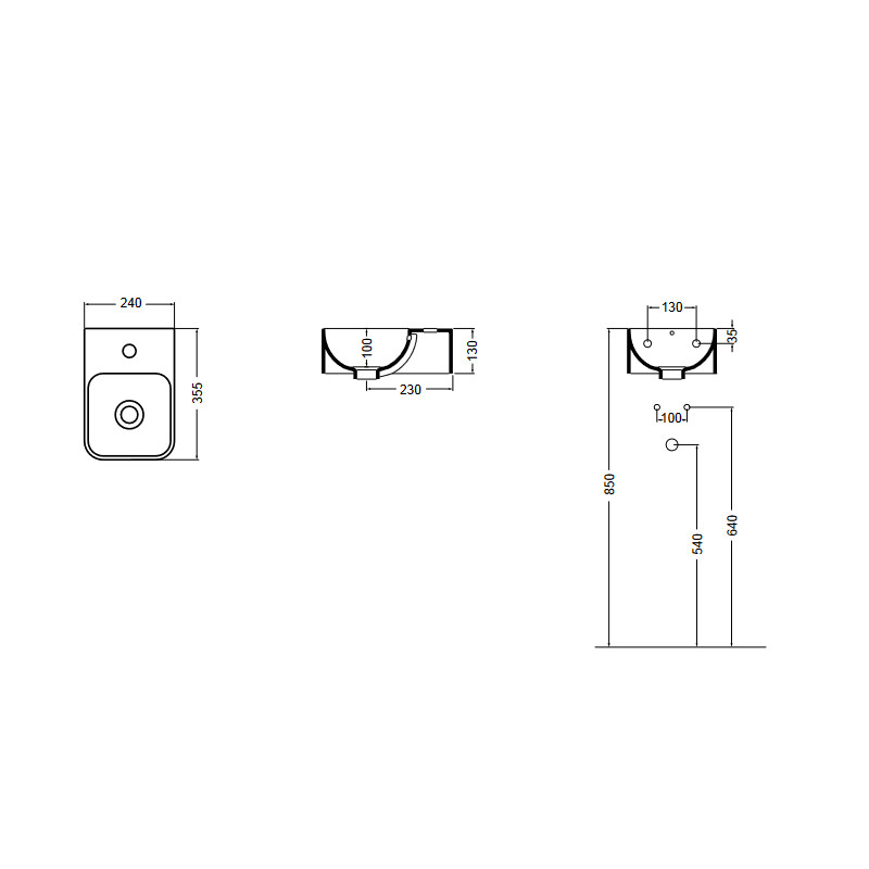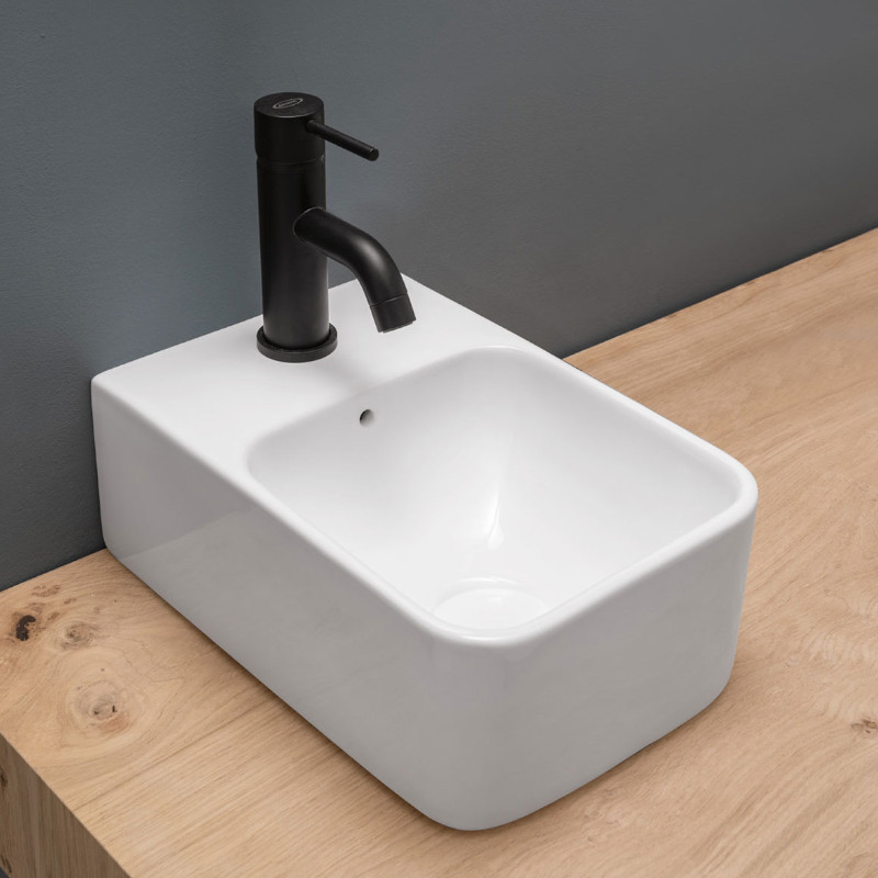 Axa Normal Umywalka ścienna/stawiana na blat 24x35,5 cm z korkiem Click-clack i syfonem Biały połysk WS10101V+AF0015+SI020