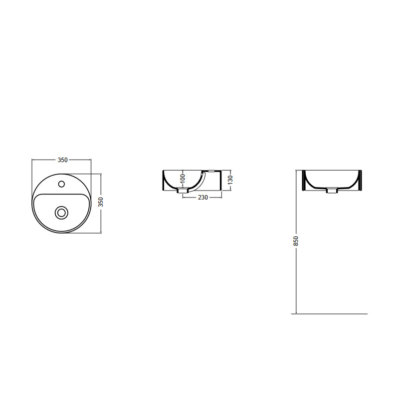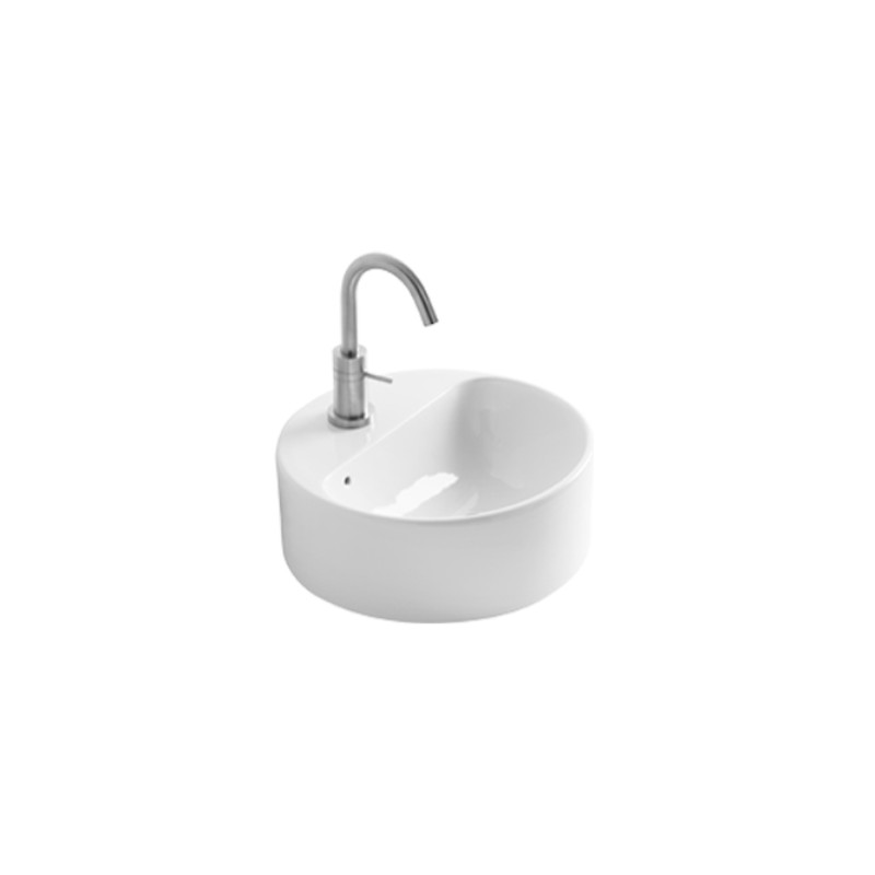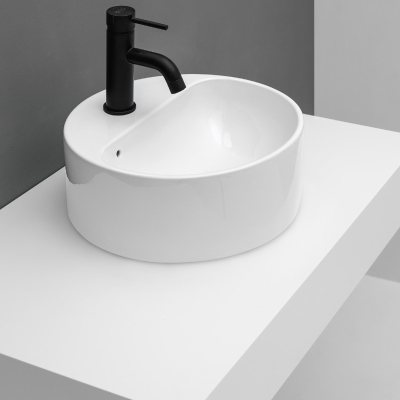 Axa Normal Umywalka okrągła stawiana na blat ∅ 35 cm z korkiem Click-clack i syfonem Biały połysk WS10501V+AF0015+SI020