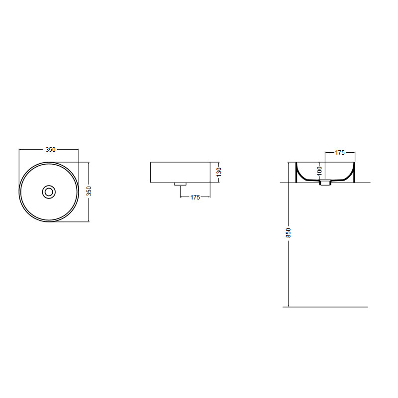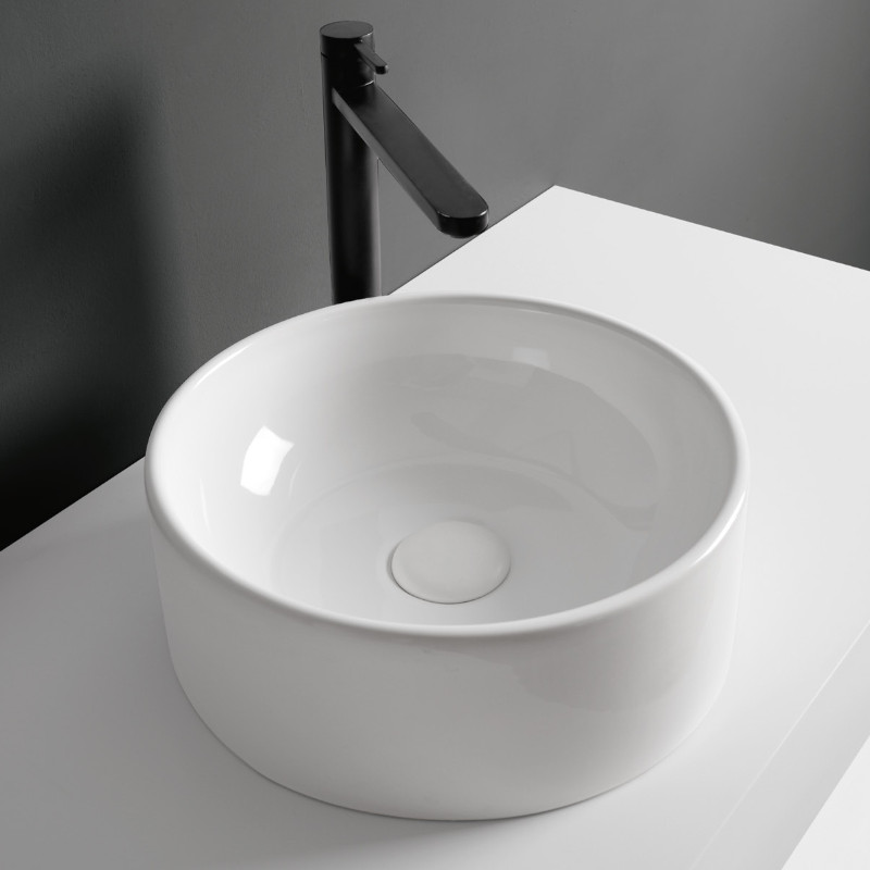 Axa Normal Umywalka okrągła stawiana na blat ∅ 35 cm z korkiem Click-clack i syfonem Biały połysk WS10601V+AF0015+SI020