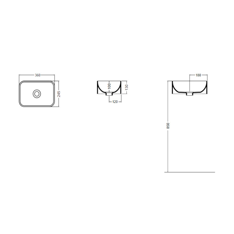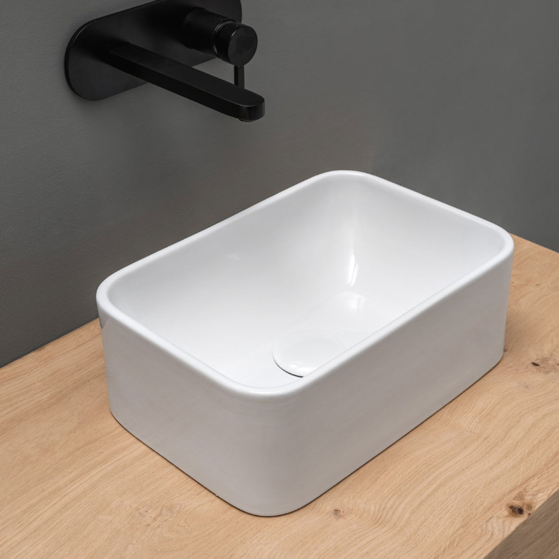 Axa Normal Umywalka prostokątna stawiana na blat 36x24,5 cm z korkiem Click-clack i syfonem Biały połysk WS10201V+AF0015+SI020