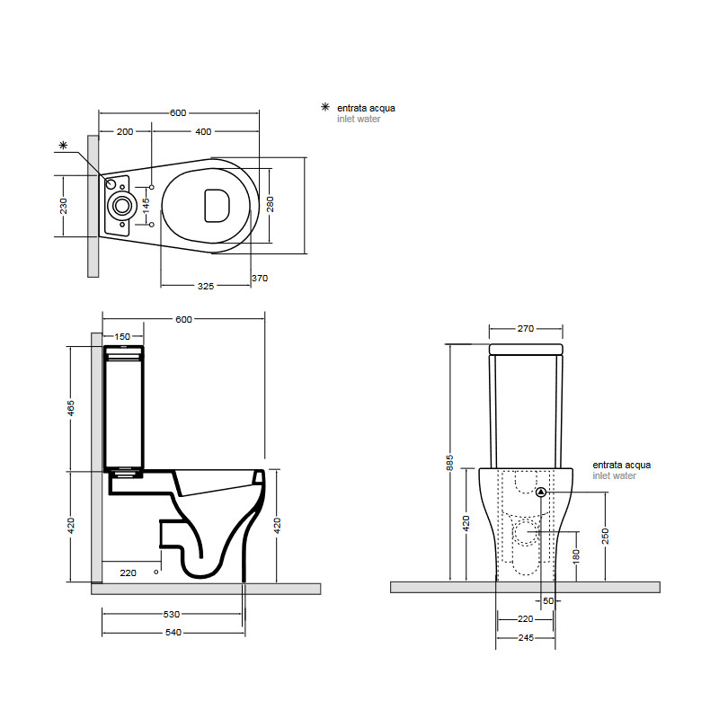 Axa Cinque Miska stojąca 35x60 cm do kompaktu i zbiornik z deską WC Biały połysk 361701+368101+368801