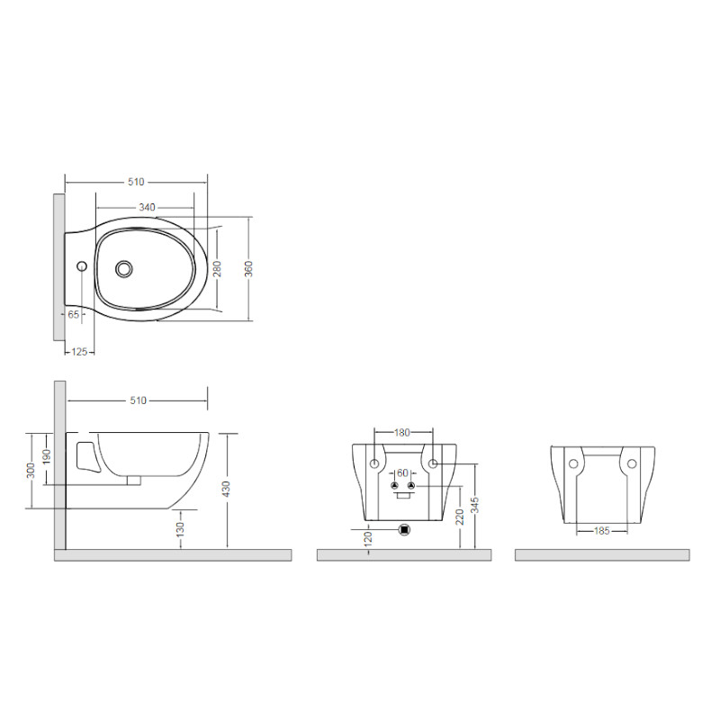 Axa Prime Bidet ścienny 36x51 cm Biały połysk 442501+FI01025