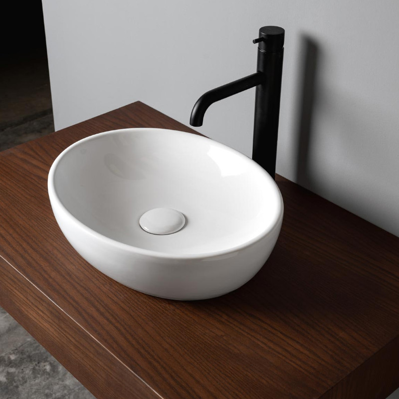 Axa H10 Umywalka stawiana na blat lub podblatowa 40x32 cm i korkiem Click-clack z syfonem Biały połysk 8208001+AF0015+SI020