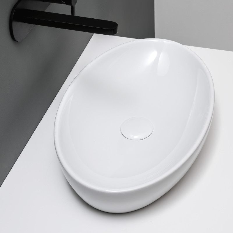 Axa H10 Umywalka stawiana na blat lub podblatowa 60x32 cm i korkiem Click-clack z syfonem Biały połysk 8208501+AF0015+SI020