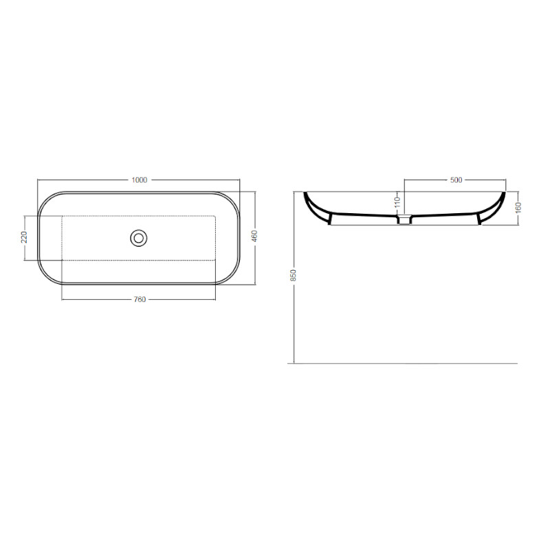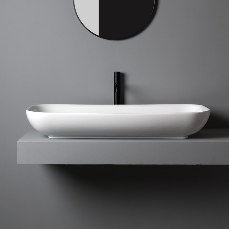 Axa Ciotola Umywalka stawiana na blat 100x46 cm i korkiem Click-clack z syfonem Biały połysk 1508201+AF0015+SI020