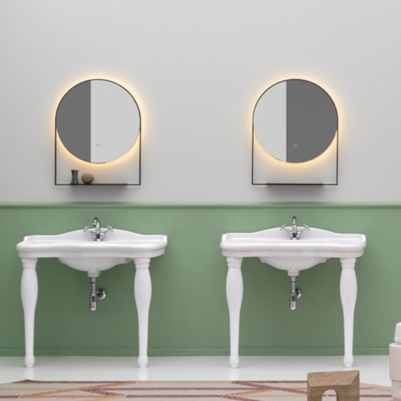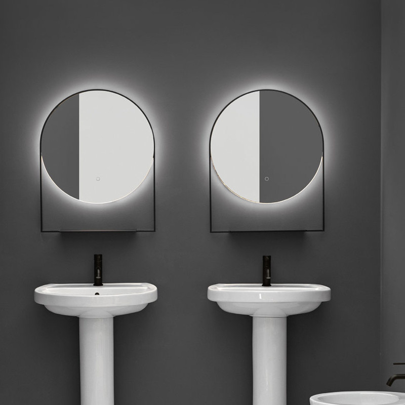 Axa Lustro ścienne okrągłe 60x75 cm z półką i podświetleniem LED Czarny A330252