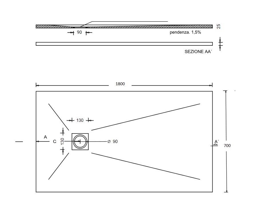 Axa H28 Brodzik prostokątny 70x180 cm Biały APDMPL70180H28