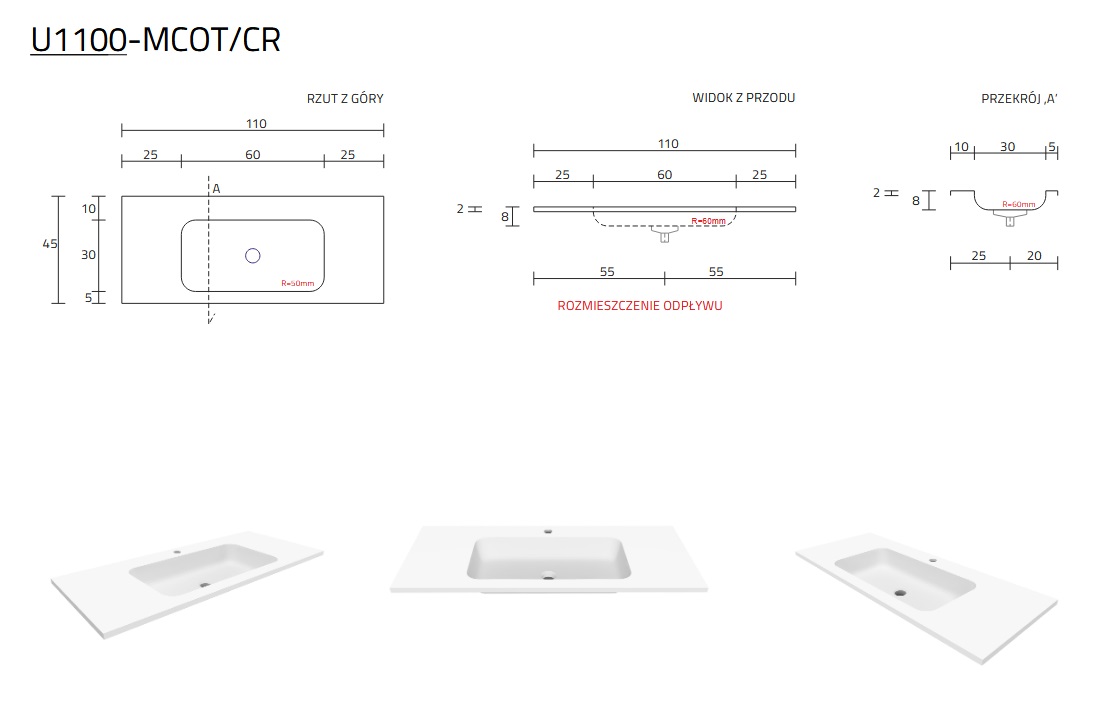 Możliwość zamówienia umywalki pod wymiar po wysłaniu projektu.