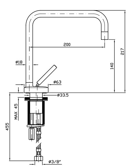 Jednouchwytowa bateria zlewozmywakowa z wylewką obrotową, perlator, wężyki elastyczne.
