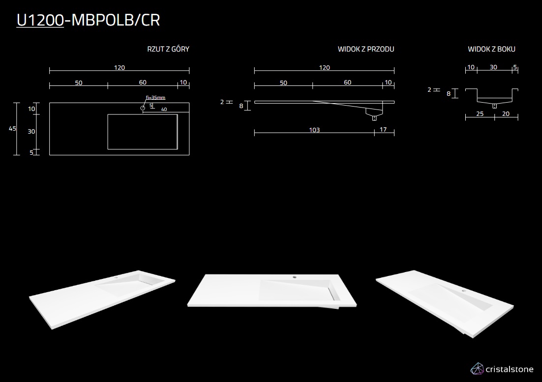 Cristalstone Linea Ideal Umywalka wpuszczana w blat Biały U1200-MBPOLB/CR
