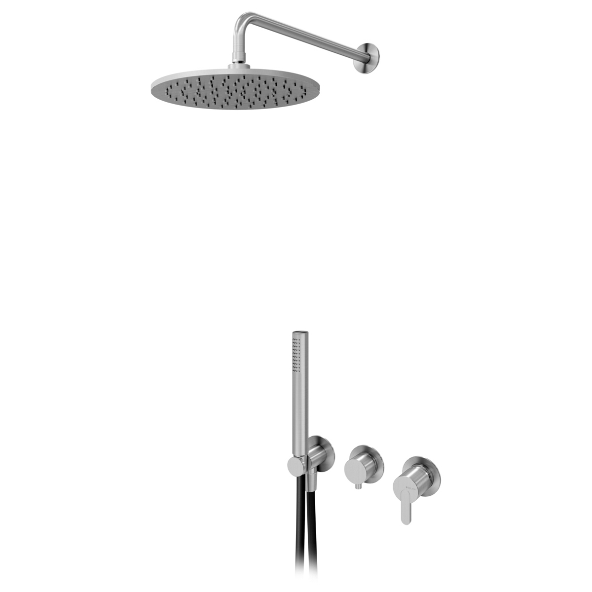 Bruma X-Alpha Zestaw natryskowy podtynkowy z deszczownicą 250 mm na ramieniu ściennym Satin stainless steel 1867821IS