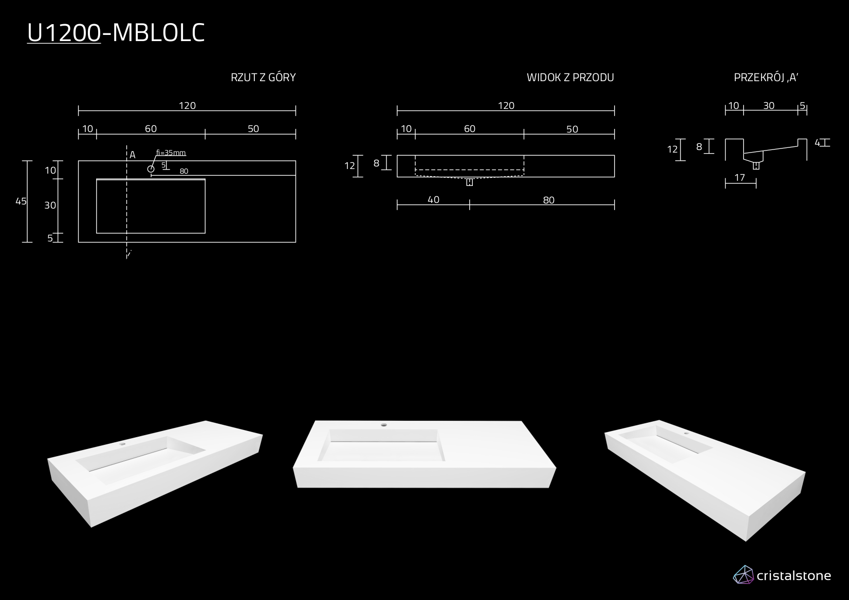 Cristalstone Linea Ideal Umywalka wpuszczana w blat Biały U1200-MBLOLC