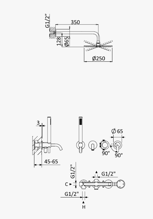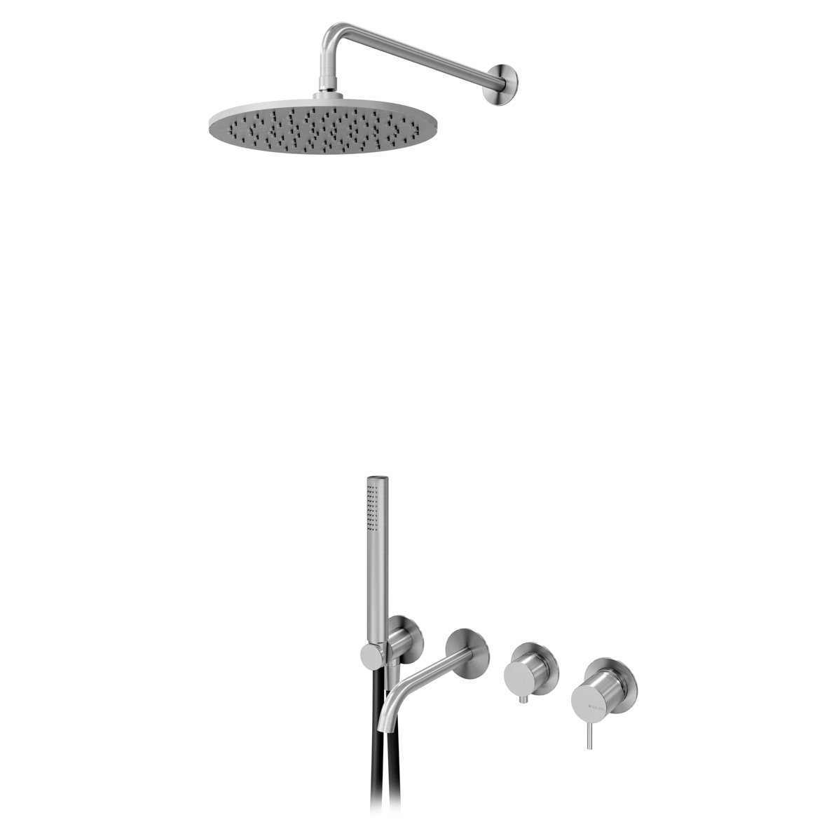 Bruma X-Alpha Zestaw wannowo-natryskowy podtynkowy z deszczownicą Ø 250 mm na ramieniu ściennym Satin stainless steel 1863212IS