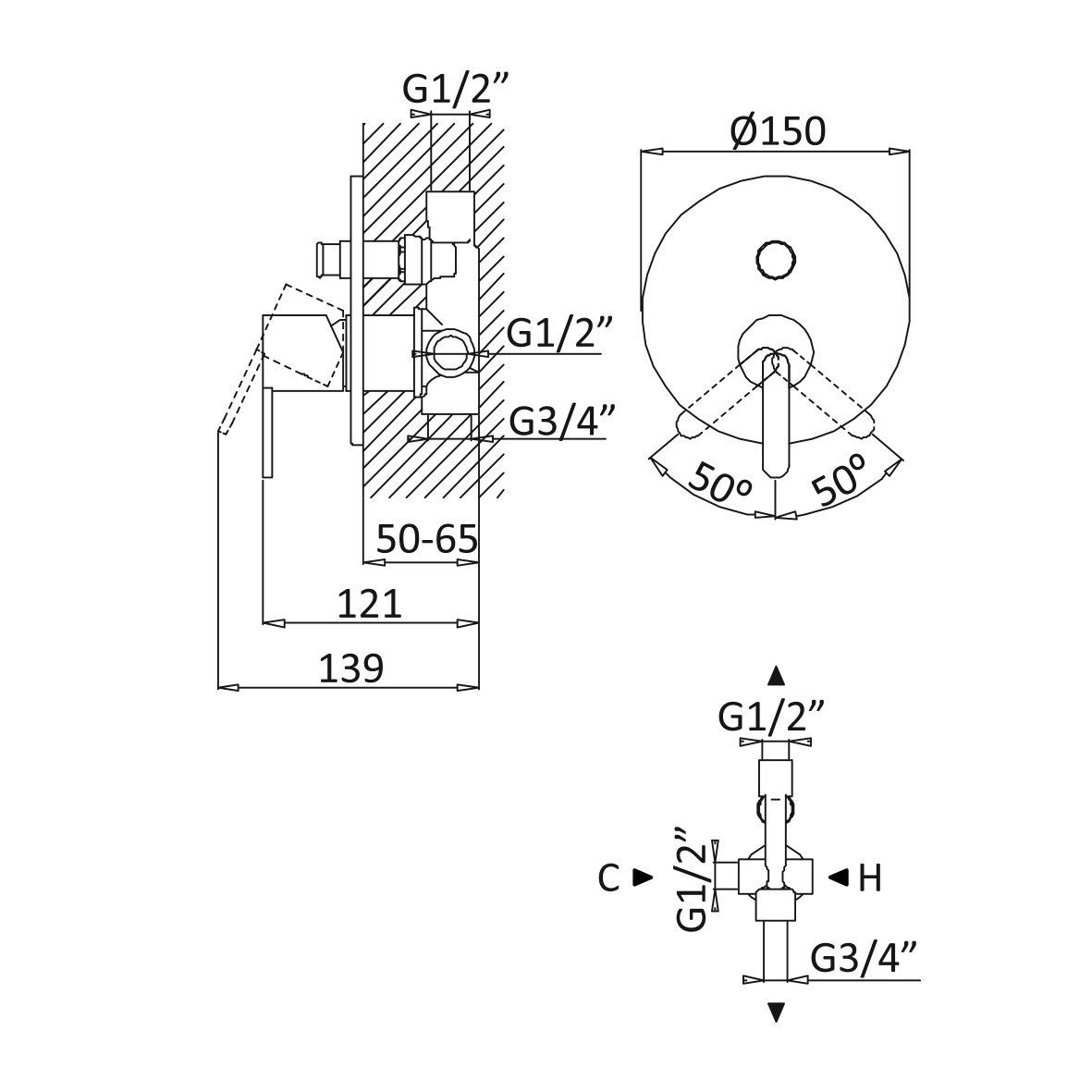 Średnica rozety: 150 mm