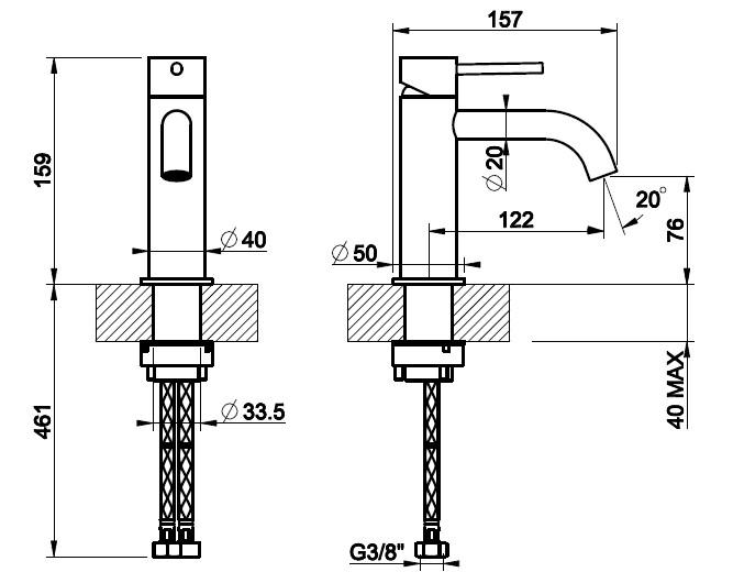 Wysokość wylewki: 7,6 cm