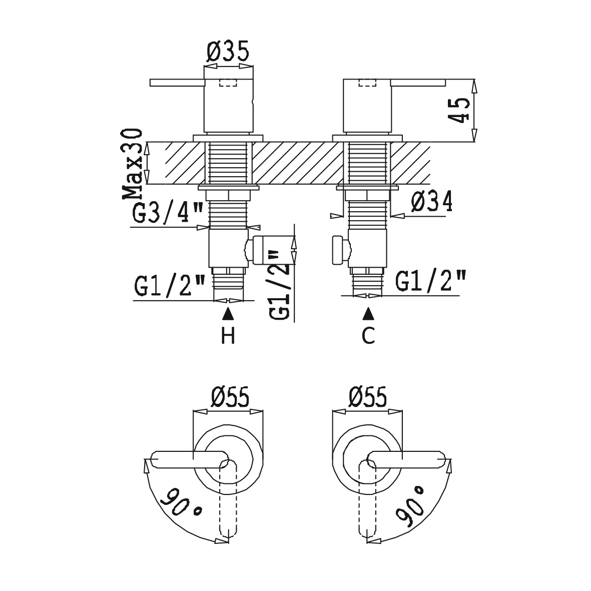 Bruma X-Alpha Mieszacze nablatowe Satin stainless steel 1869602IS