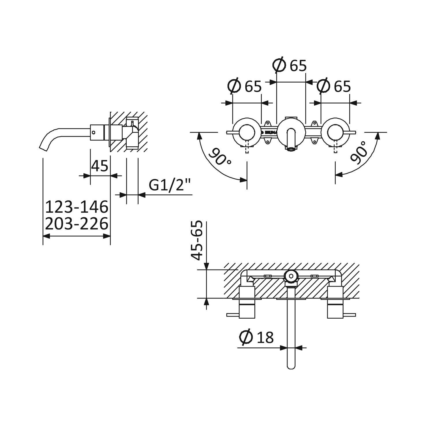 Bruma X-Alpha Bateria umywalkowa podtynkowa 150 mm Satin stainless steel 1862502IS