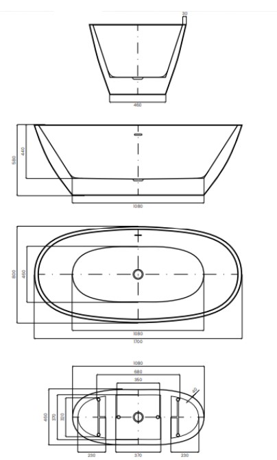 Alanad Rongbuk Wanna wolnostojąca 170x80 cm z przelewem szczelinowym biały AWW-001-170ZP