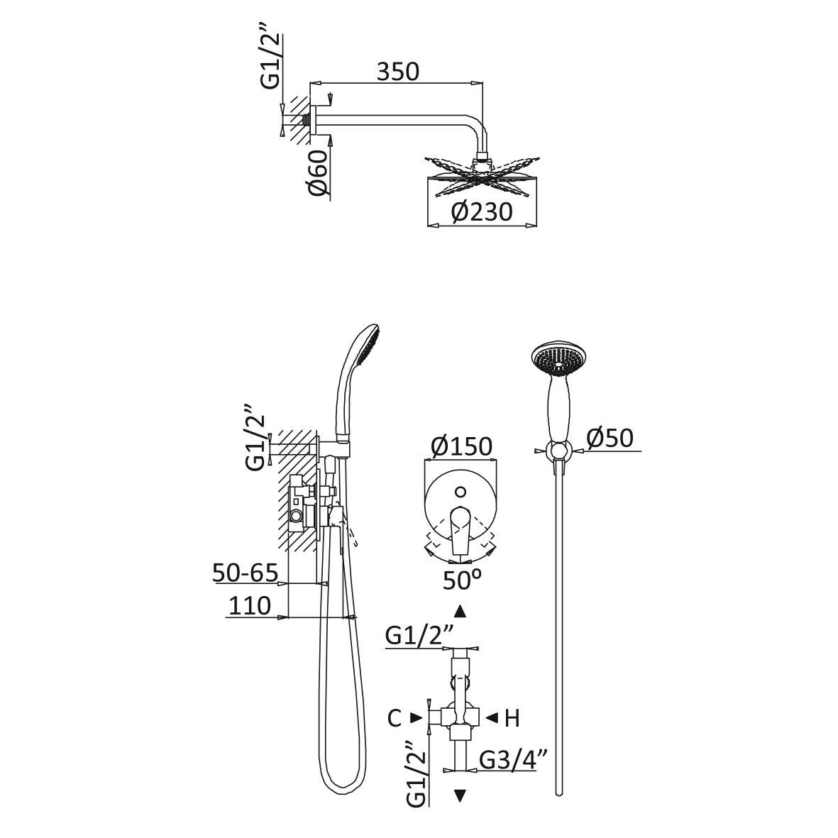 Średnica rozety: 150 mm