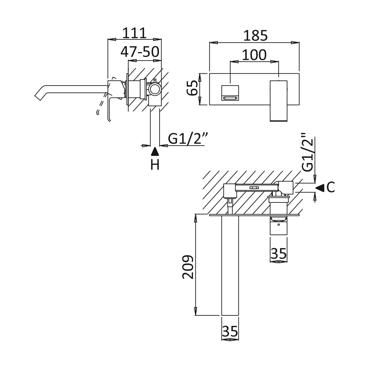 Bruma Linea Bateria umywalkowa z korkiem Click-Clack Naścienna chrom 1828241CR