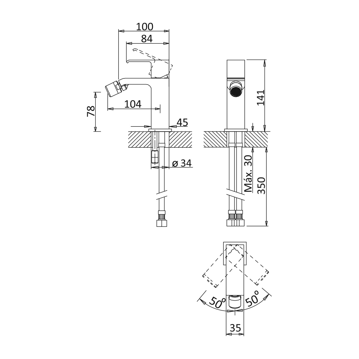 Bruma Linea Bateria bidetowa jednootworowa bez korka chrom 1820201CR