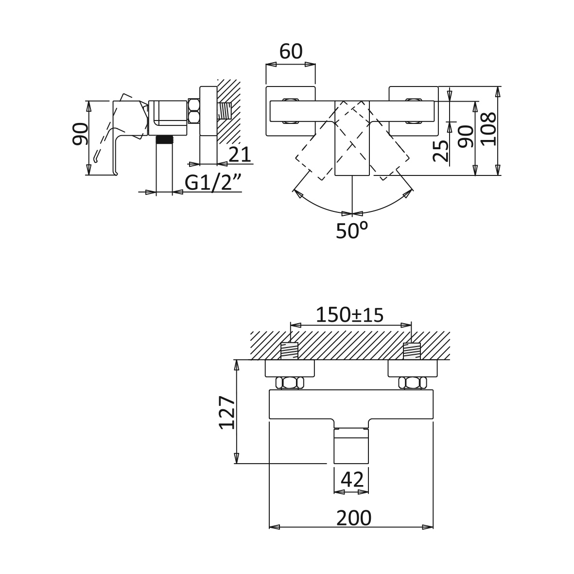 Bruma Linea Bateria natryskowa Naścienna chrom 1820401CR