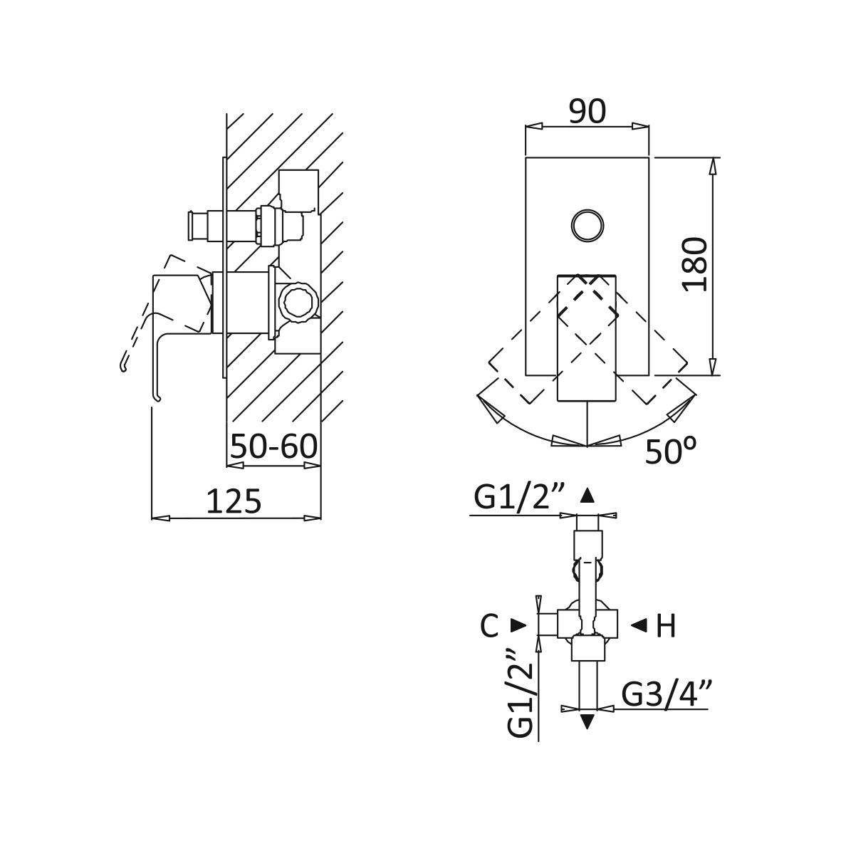 Bruma Linea Bateria wannowo-natryskowa Podtynkowa chrom 1821301CR
