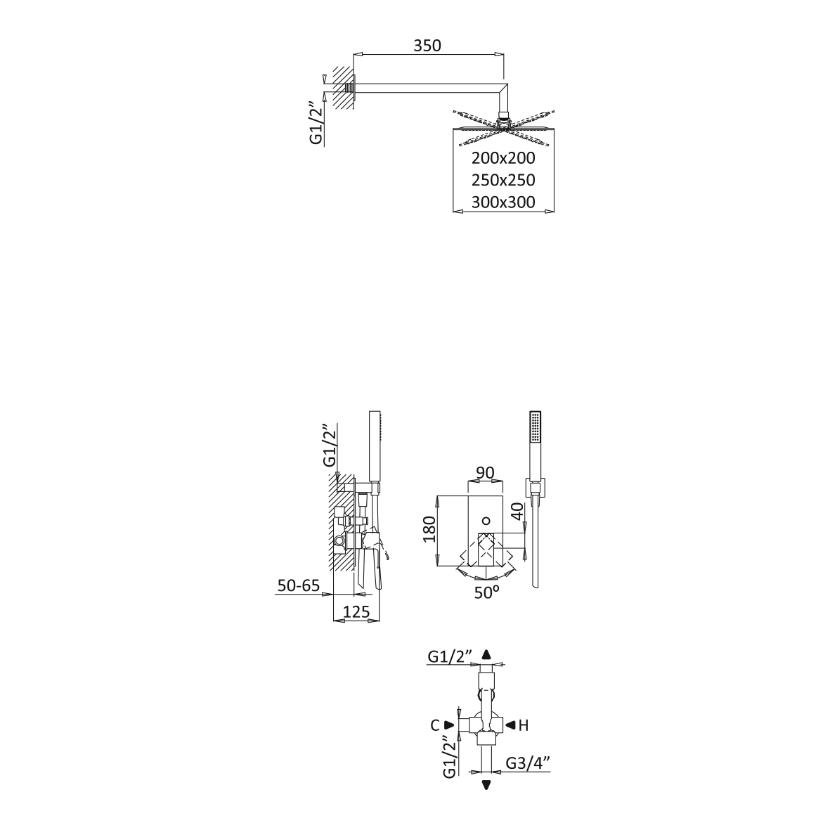 Bruma Linea Zestaw natryskowy 200 mm Podtynkowy z ramieniem ściennym chrom 1827606CR