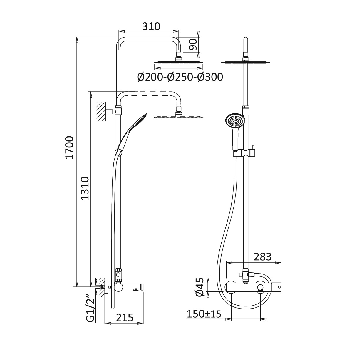 Średnica deszczownicy: 250 mm