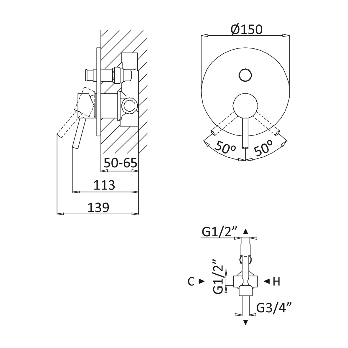 Bateria podtynkowa z elementem montażowym podtynkowym w komplecie.