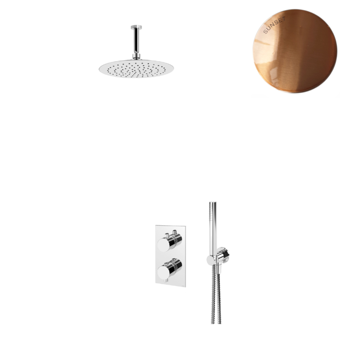 Bruma Leaf Zestaw natryskowy Ø 250 mm termostatyczny podtynkowy z ramieniem sufitowym Sunset 1385604SS