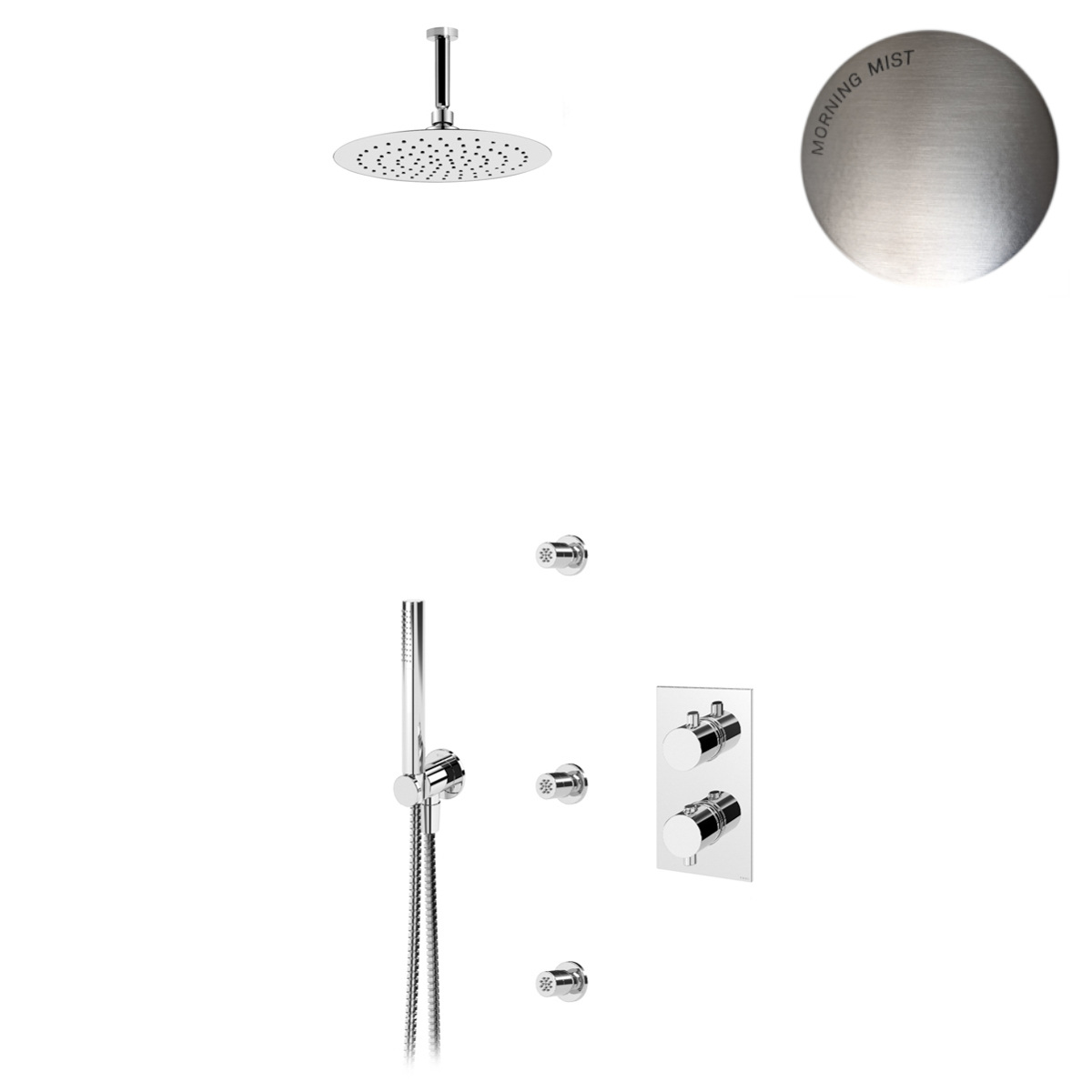 Bruma Leaf Zestaw natryskowy termostatyczny podtynkowy z deszczownicą Ø 250 mm sufitową z dyszami ściennymi Morning Mist 1386102MM
