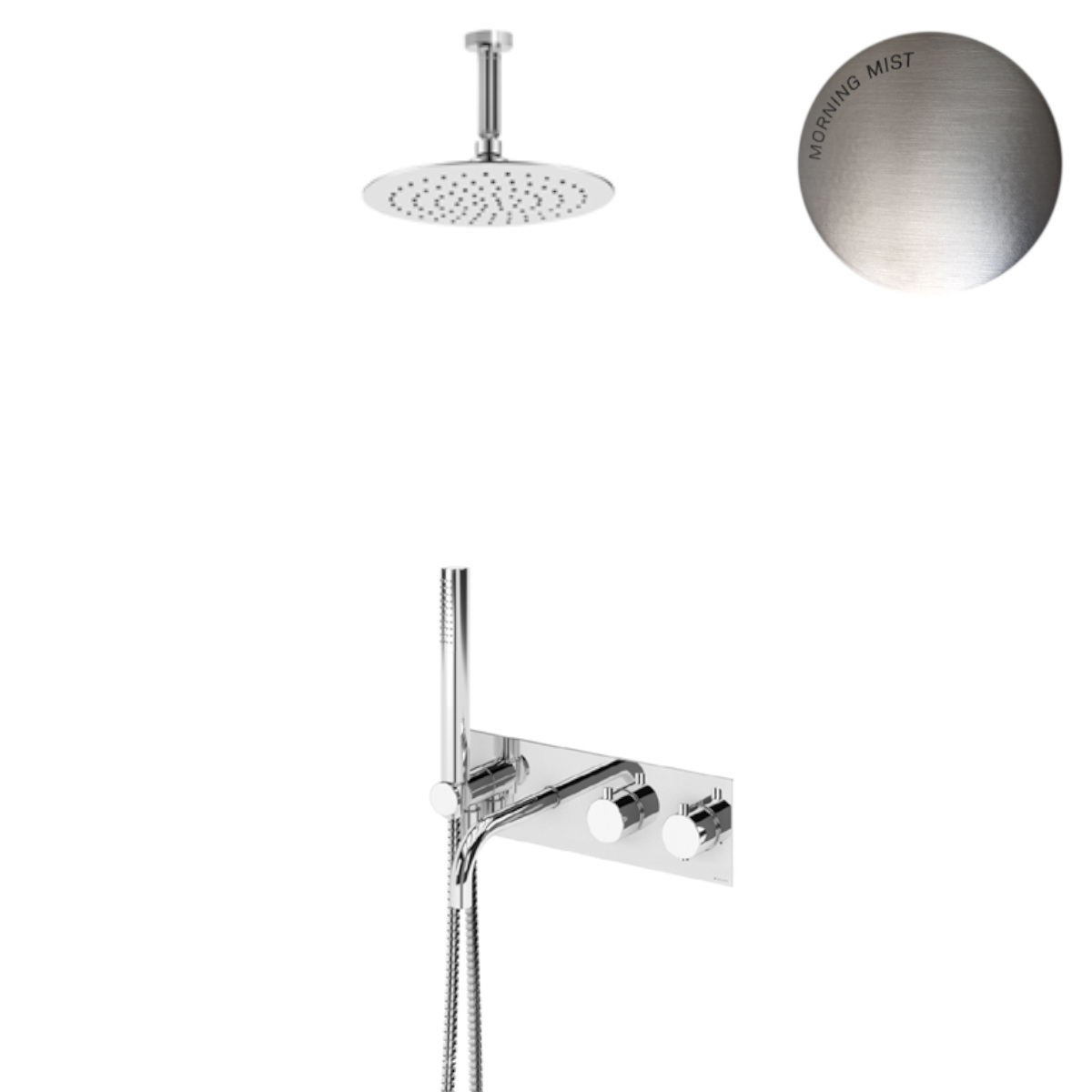 Bruma Lusitano Zestaw wannowo-natryskowy Ø 250 mm podtynkowy termostatyczny z ramieniem sufitowym i wylewką Morning Mist 1383402MM