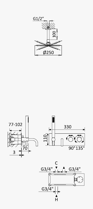 Średnica deszczownicy: 250 mm