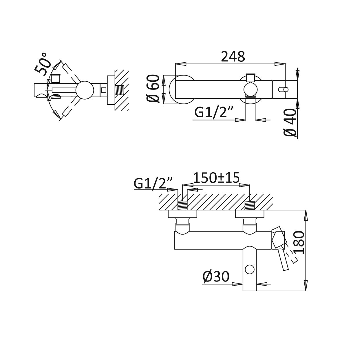 Rozstaw przyłączy: 150±15 mm