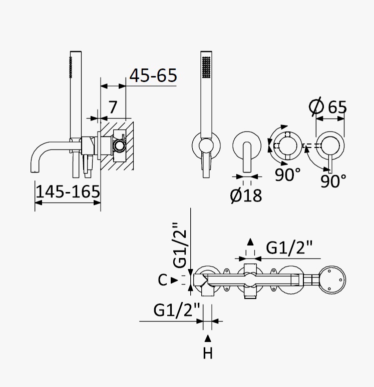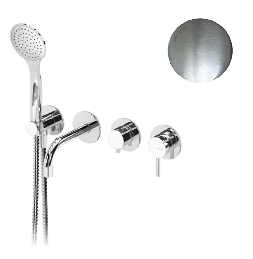 Bruma Lusitano Jednouchwytowa bateria wannowo-prysznicowa podtynkowa z 3 wylotami, z prysznicem ręcznym Satinox 1070901ST