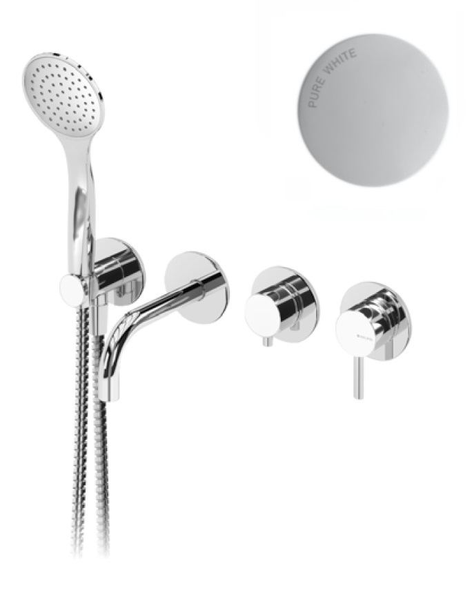 Bruma Lusitano Jednouchwytowa bateria podtynkowa z wylewką wannową i prysznicem ręcznym Pure white 1071001PW