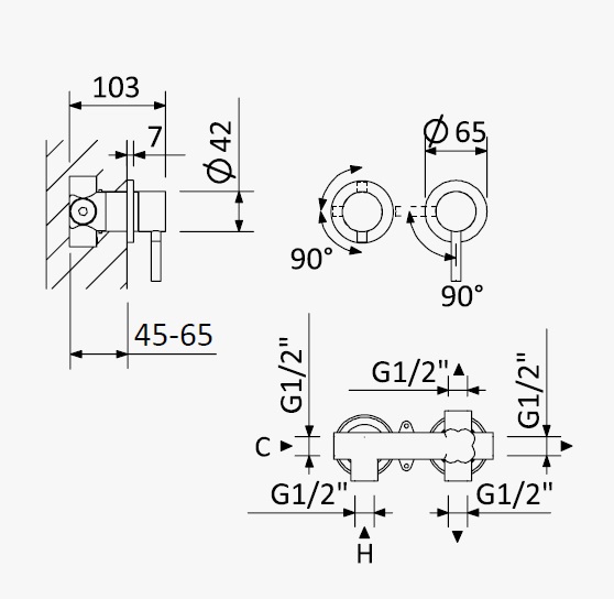 Bruma Lusitano Bateria natryskowa jednouchwytowa podtynkowa, z 3 wyjściami Morning Mist 1071421MM