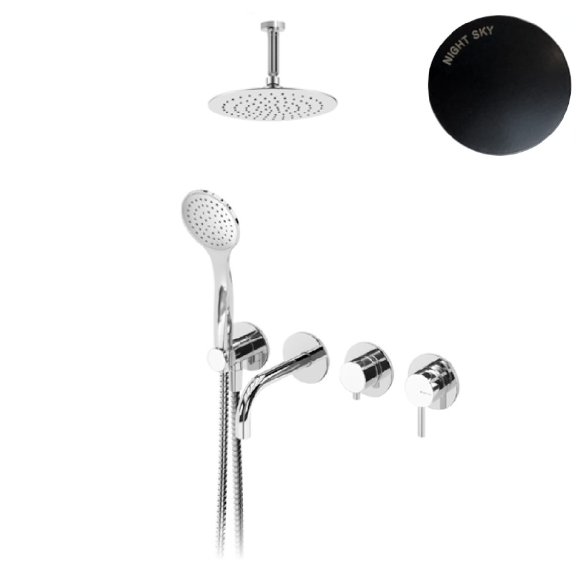 Bruma Lusitano Zestaw wannowo-prysznicowy podtynkowy z deszczownicą Ø 250 mm, prysznicem ręczny i wylewka Night sky 1073521NS